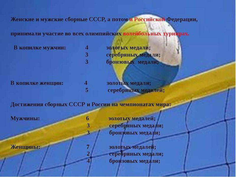 - Волейбол - единственная игра с мячом, которая не предполагает никаких касаний снарядом земли.